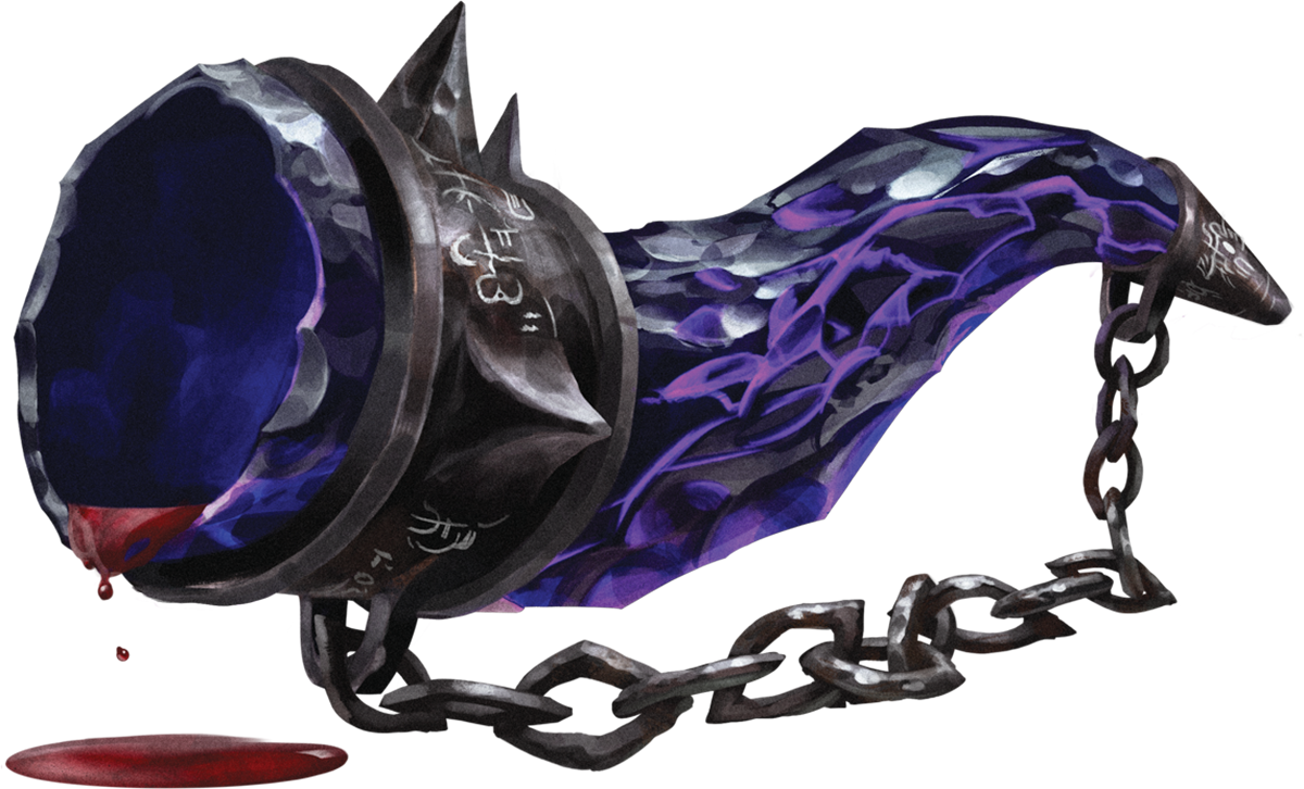 Kharash’s Promise is a 3-foot long warhorn forged of demonglass and black iron. A trickle of boiling blood constantly drips from its widest end. While holding this Horn, you gain a +3 bonus to spell attack rolls and to the saving throw DCs of your Bard spells.