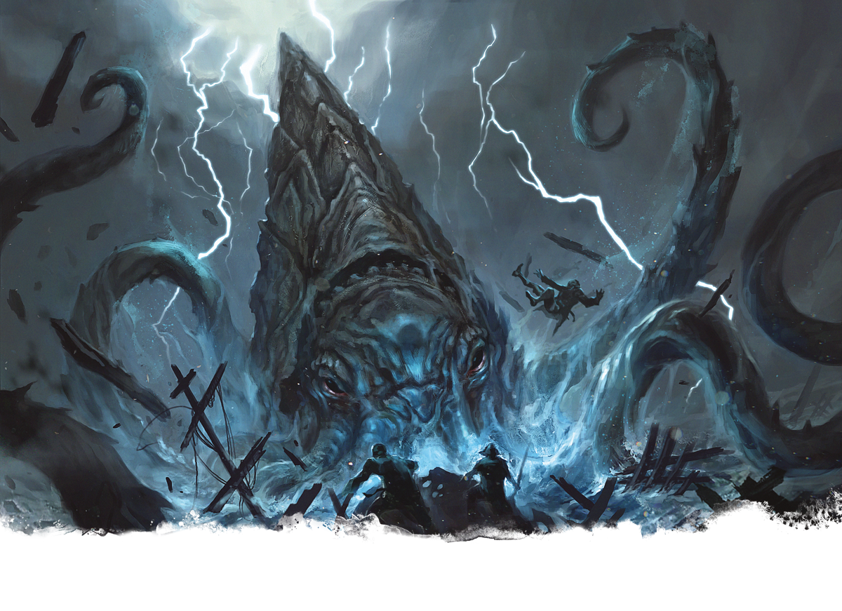 Ancient weapons of the gods, krakens slumber in the deepest oceanic abysses, awaiting their time to rise and dominate the world. These massive, many-tentacled horrors combine overwhelming physical might with formidable cunning. Their powerful limbs shatter ships and topple spires, and they use their control over storms to rain down lightning on their foes.