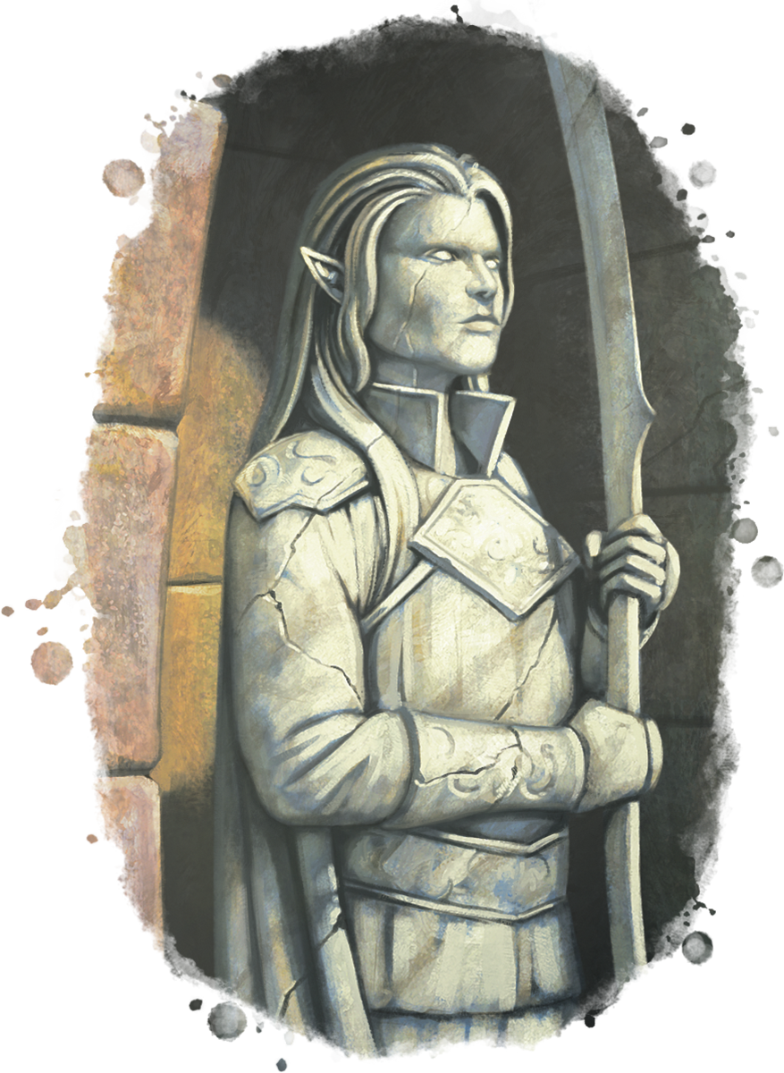 Stone Cultists are humanoids whose connection to the daelkyr Orlassk has altered them, causing flesh to partially transform into stone. Stone Cults always have some sort of tie to Orlassk, though it’s not always obvious what that is. Sometimes the locus of this influence is a location—a hidden altar carved long ago, a vein of blood-red corrupted khyber shards, a pulsing heart formed from quickstone. Other cults are affected by something small that can be moved around—an idol of quickstone, a mask that fuses to the face of the wearer and transforms them into a Stone Speaker. Some cultists are ultimately transformed into creatures of animate stone, like gargoyles; others eventually become inanimate statues, paying a terrible price for their devotions.