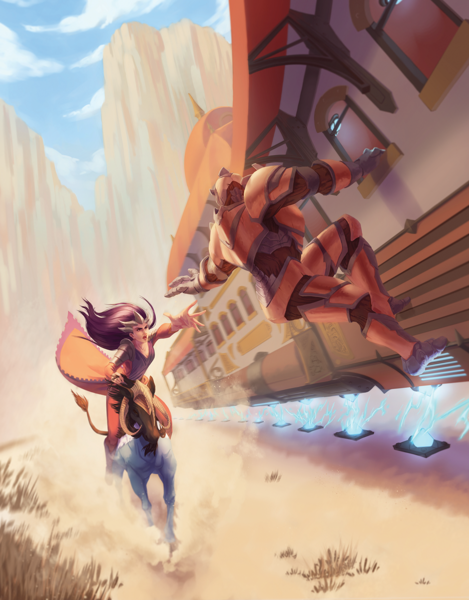You never know what you’ll see on the Border Road. Wasn’t so long ago, sight of a gnoll would be reason to circle the wagons. These days, we’ll stop and see what they’ve got to trade. I’ve come across Vadalis monarchs leading herds of tribex like you’ve never seen. Eldeen druids riding giant bears. Once, I saw a hundred kobolds heading north, looking to settle on the shore of Silver Lake. Those were good days. On the bad days, I’ve seen Brelish deserters looking for easy prey and bellowing minotaurs searching for a challenge. You never know what you’ll encounter on the road—just gotta hope you’ll live to see the morning.
