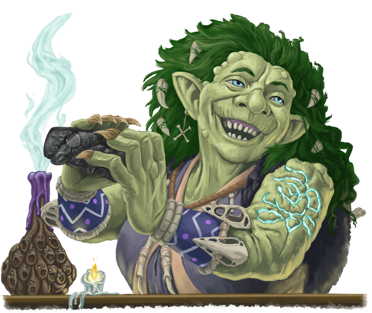 Most of Graywall is designed for the comfort of orcs and ogres, creatures of medium and large size. However, a significant portion of Droaam’s population and workforce are goblins and kobolds. Ogres perform heavy labor and orcs work in the quarries and mines, but it’s the goblins who perform much of the more delicate work; goblins serve as carpenters, tailors, potters, painters, custodians, and more. Khaar’paal elders work with the kobolds to identify those with sorcerous talents and train them as magewrights. Workhouses often have halls and doorways high enough for ogres to haul out carts, but everything else about Sar Kuraath—from the furniture to the flagons at Bahiri’s—are designed for small creatures.