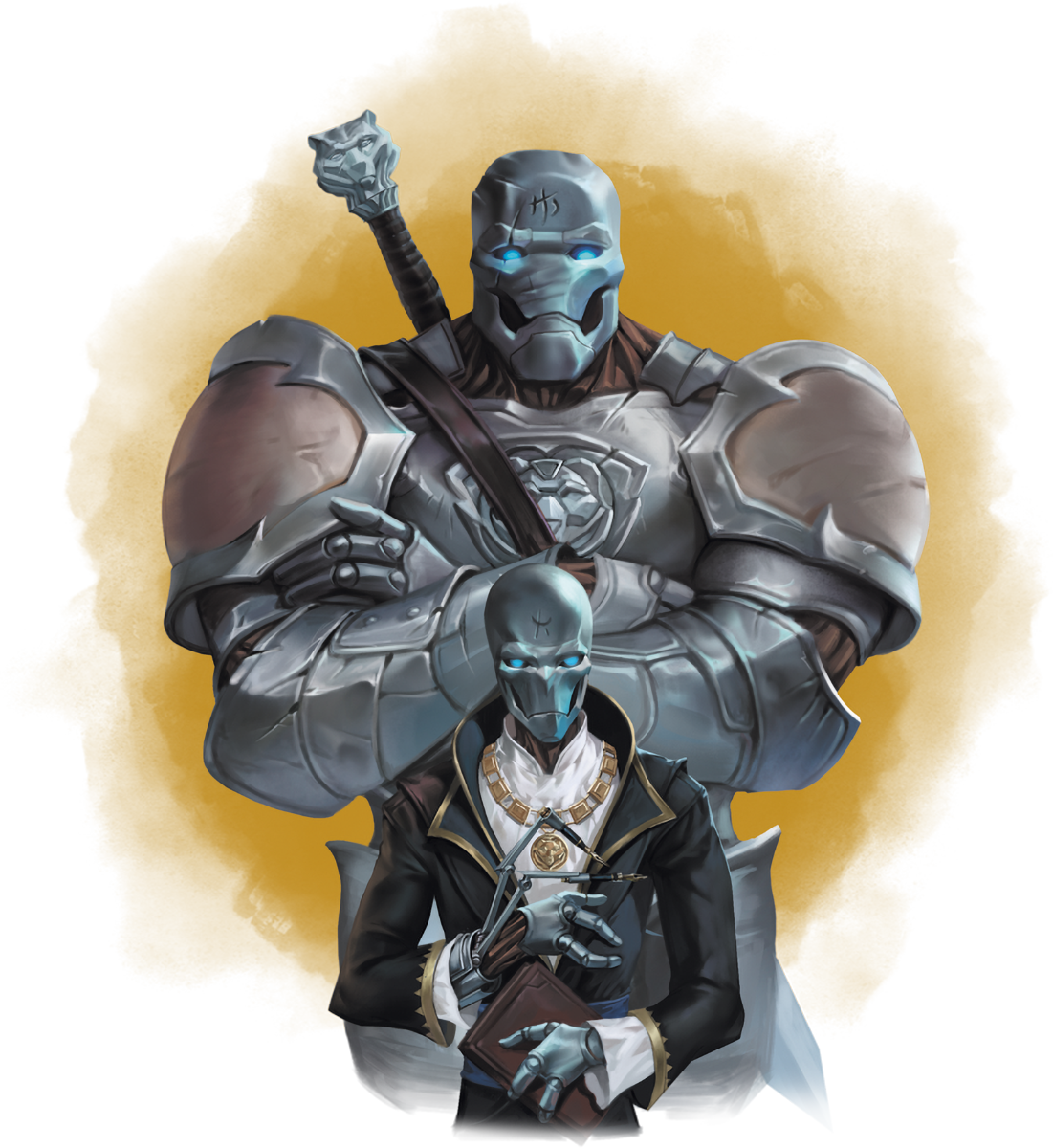 Sheriff Constable enforces the law. A warforged juggernaut, his utter adherence to military regulations caused his comrades to name him “Constable,” and he chose to embrace that name. So, he’s the sheriff, Constable. He’s disgusted by the greed and pettiness he sees in the common citizenry, but he knows that he lacks the resources to pursue every criminal and has adapted to the realities of his position. Nonetheless, anyone foolish enough to break the laws of Breland in his presence should expect swift justice; he may overlook deals made in the shadows, but he will not let a crime he observes go unpunished. He is very protective of the Magistrate, who at the moment is his only real friend.