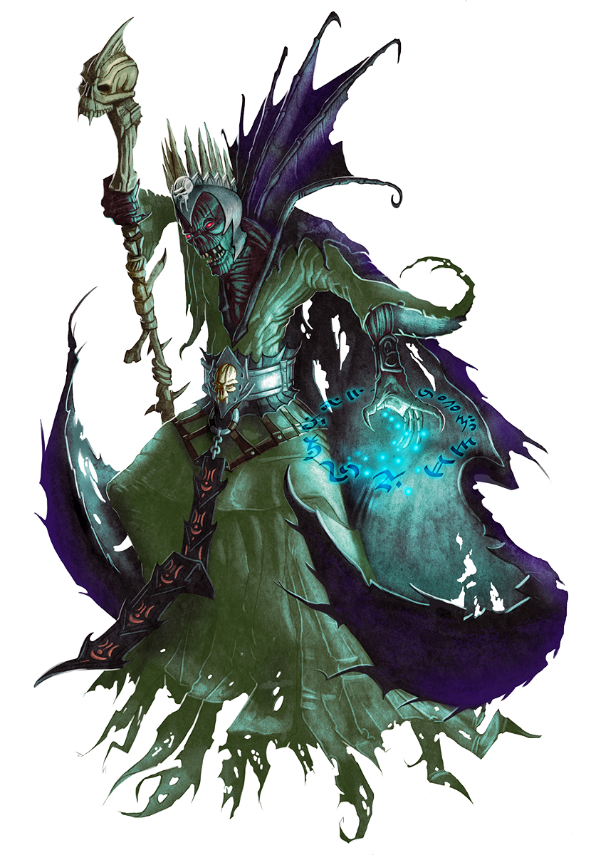 Few creatures are more feared than the lich. The pinnacle of necromantic art, the lich is a spellcaster who has chosen to shed his life as a method to cheat death by becoming undead. While many who reach such heights of power stop at nothing to achieve immortality, the idea of becoming a lich is abhorrent to most creatures. The process involves the extraction of the spellcaster's life-force and its imprisonment in a specially prepared phylactery—the spellcaster gives up life, but in trapping life he also traps his death, and as long as his phylactery remains intact he can continue on in his research and work without fear of the passage of time.